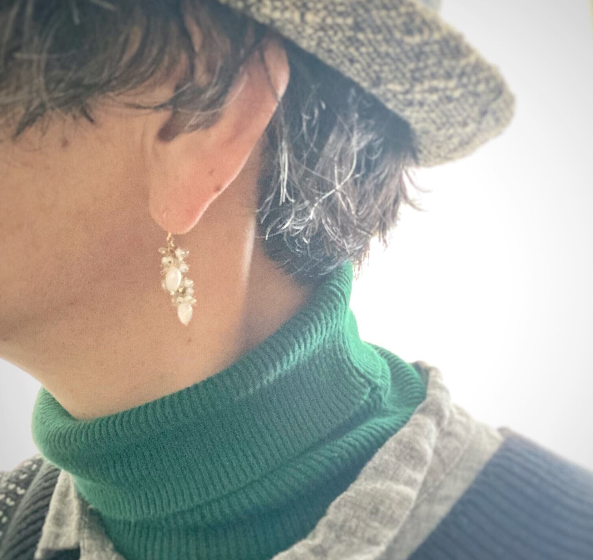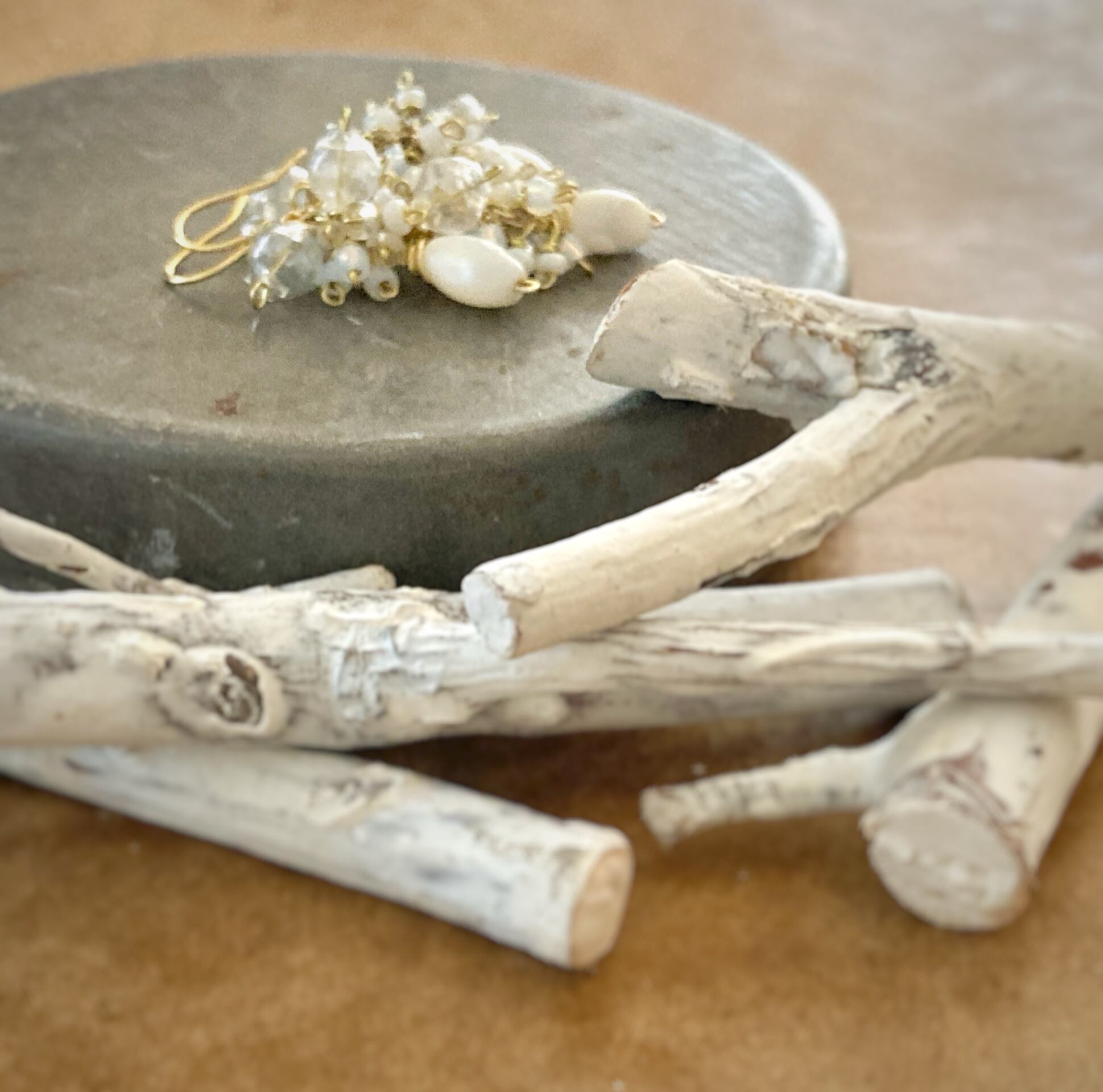 白蝶貝とスフレビーズの耳かざり『泡の記憶』