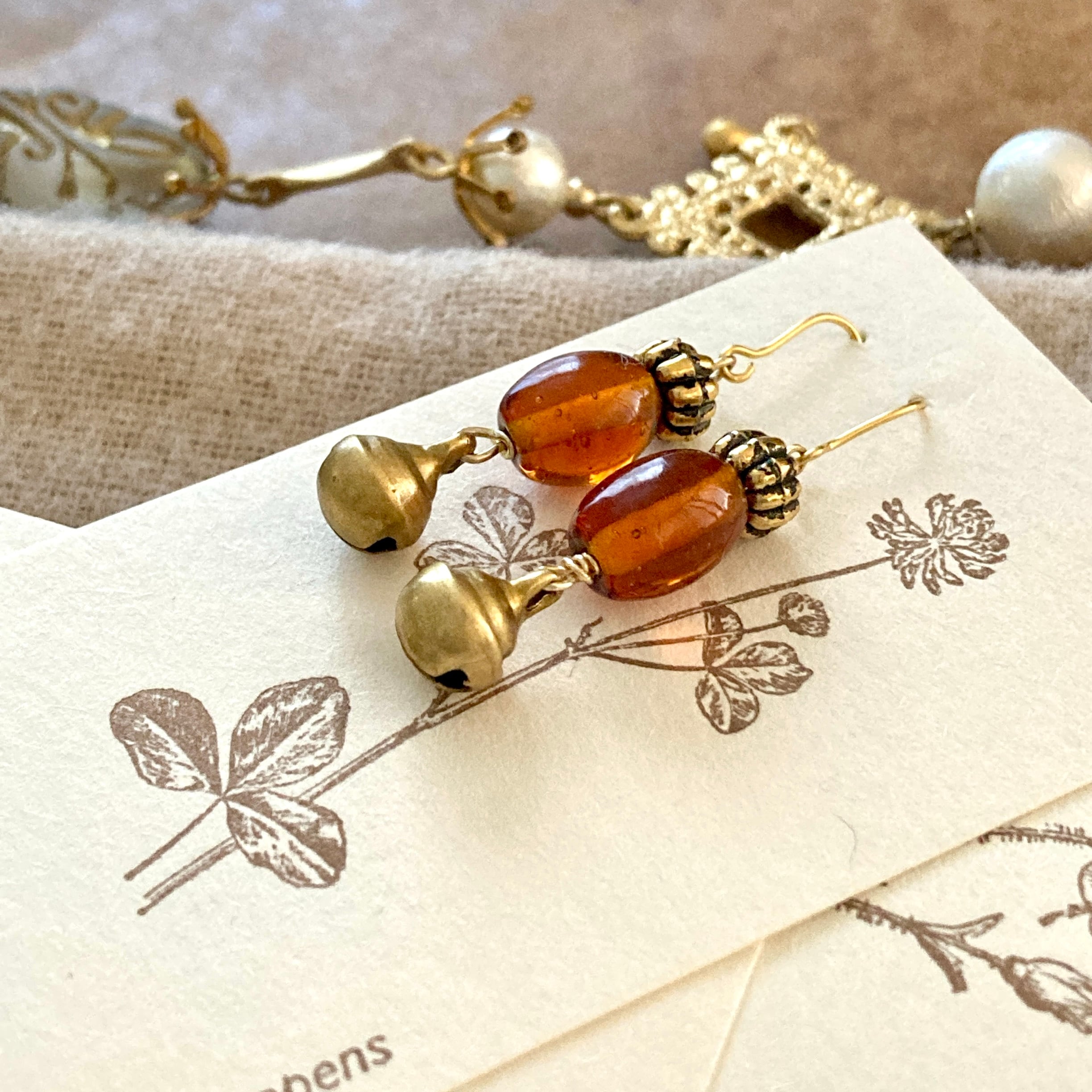 小さな真鍮の鈴を組み合わせた耳かざりです。