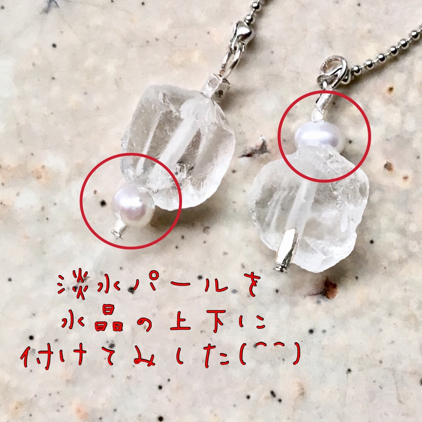 ハンマーロック水晶と淡水パールとカレンシルバーのピアス『雲上』