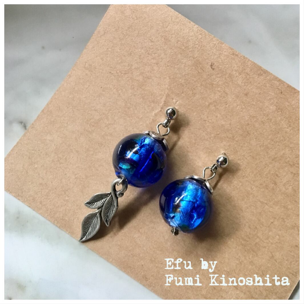 ガラスインドビーズとカレンシルバーのピアス 『瑠璃』