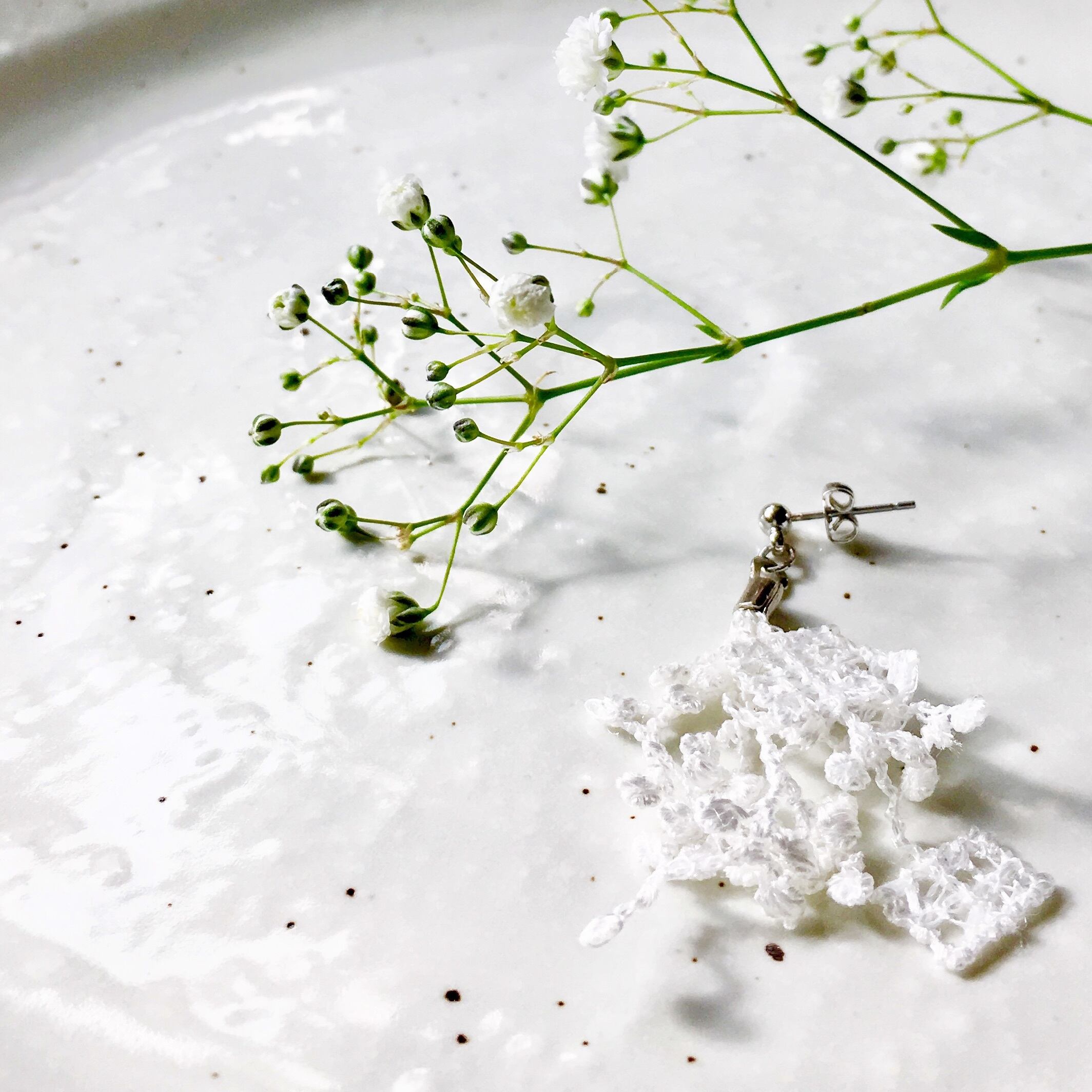 白レースの耳飾り 『かすみ草』