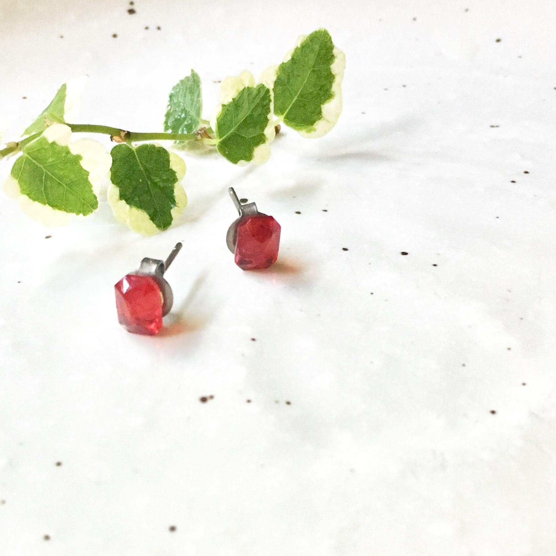 小さな赤いドイツアンティークカットガラスのピアス『schatz(シャッツ)』