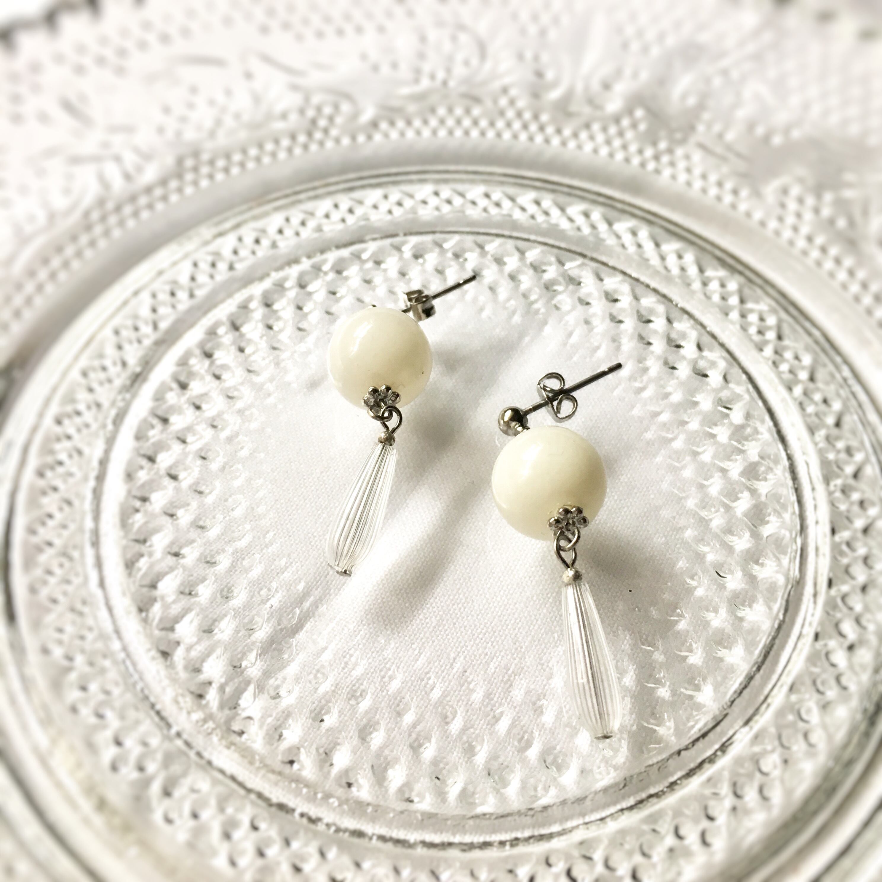 真っ白でまんまるなスフレビーズの耳かざり『白玉(しらたま)』