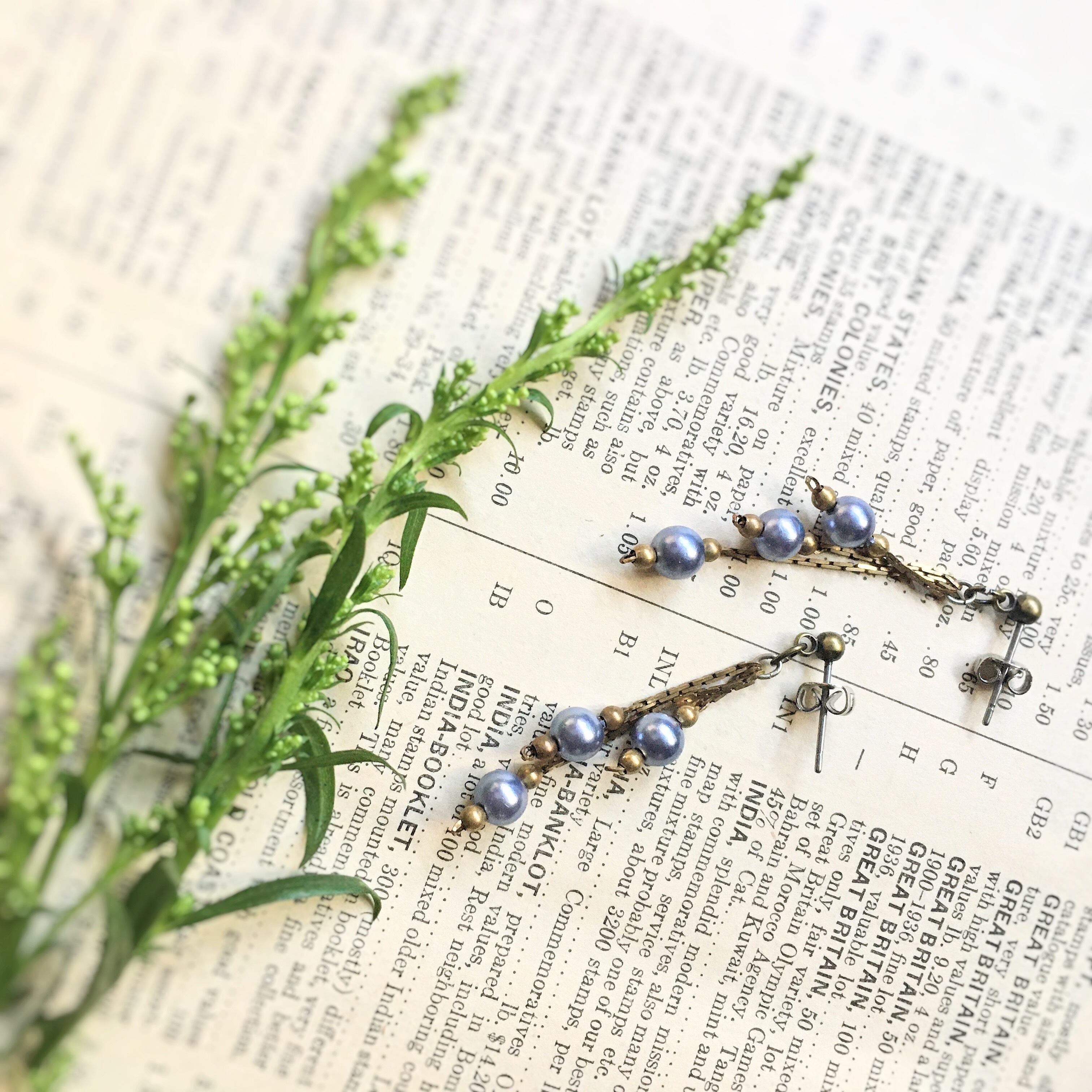 ブルーグレーのビンテージパーツの耳かざり『風雅(ふうが)』
