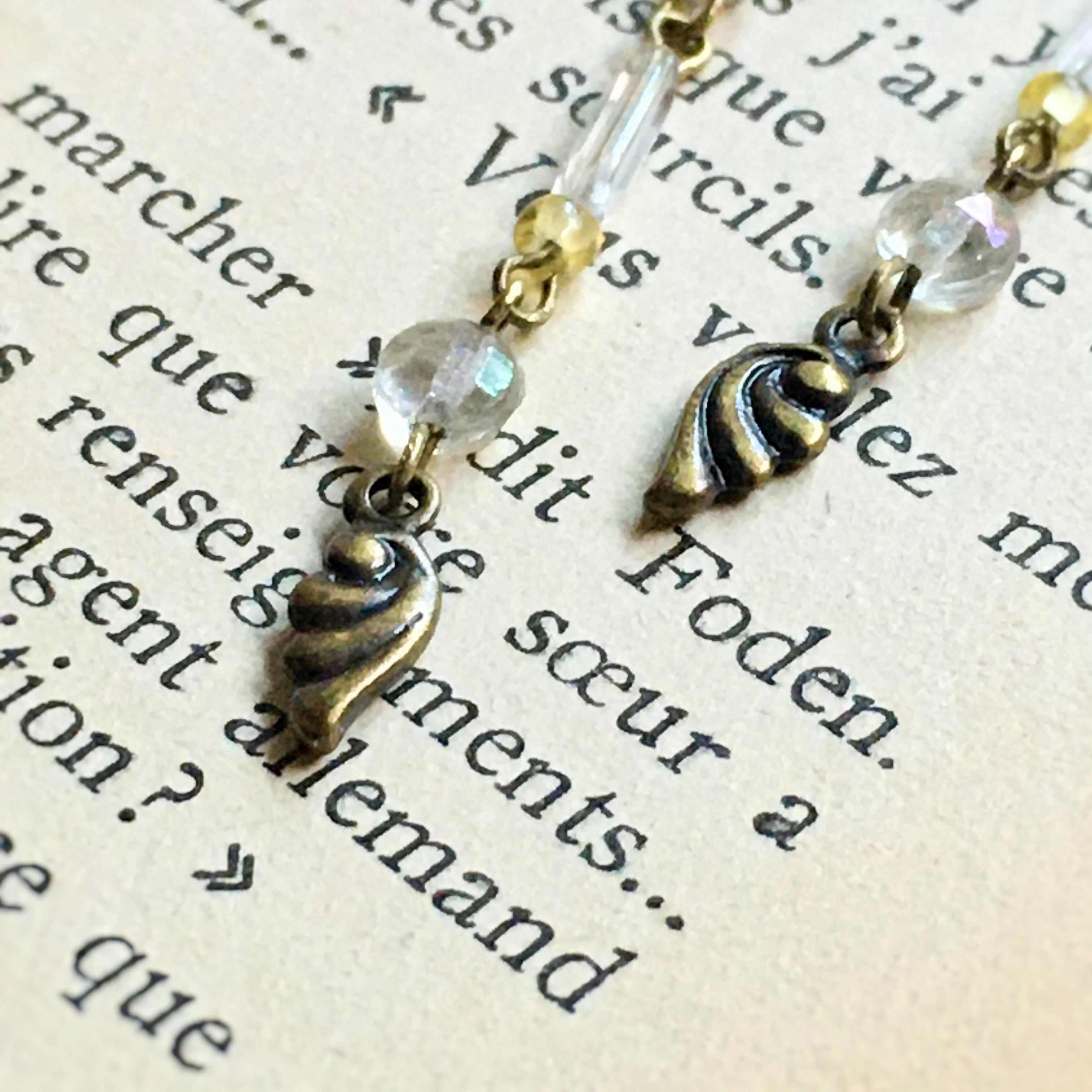 虹色フランスビンテージビーズの耳かざり『partir(パルティール)』
