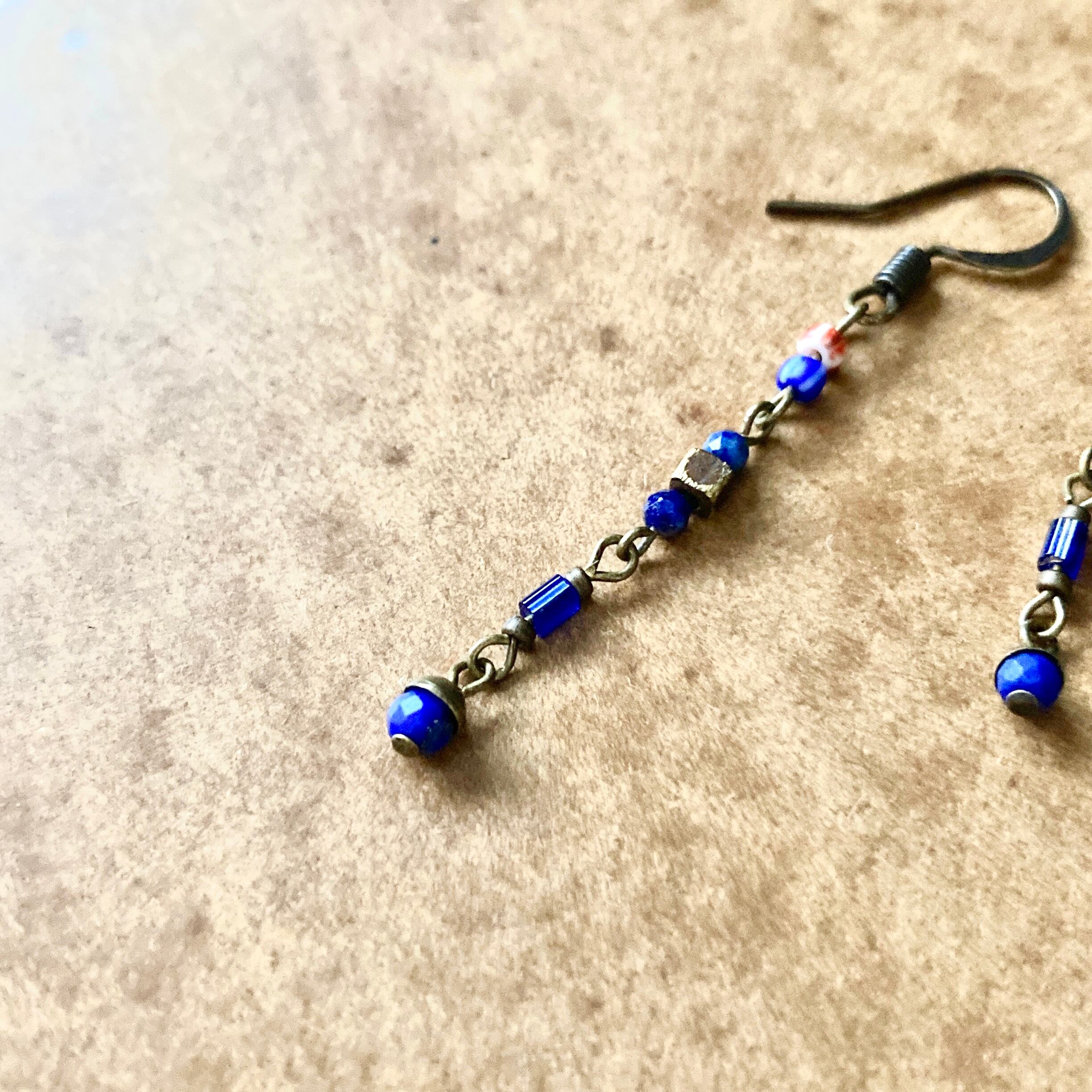 ラピスラズリとビンテージビーズの青の耳かざり『rosee(ロゼ)』