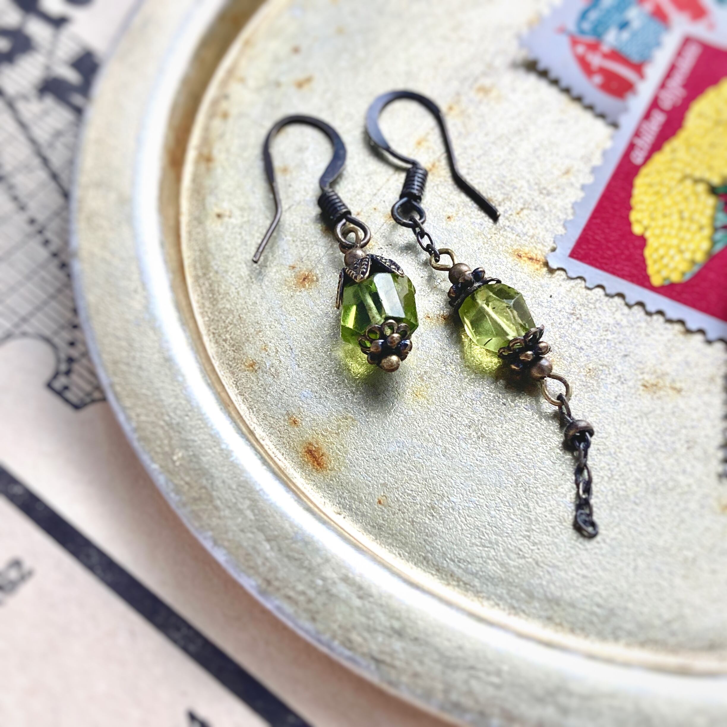 ペリドットのアシンメトリーな耳かざり『きざし』