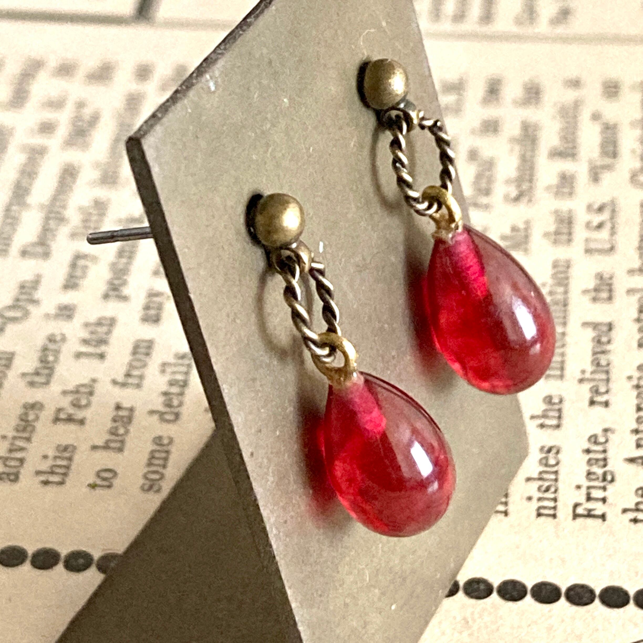 ピン付き日本ビンテージビーズの耳かざり『野いちご』